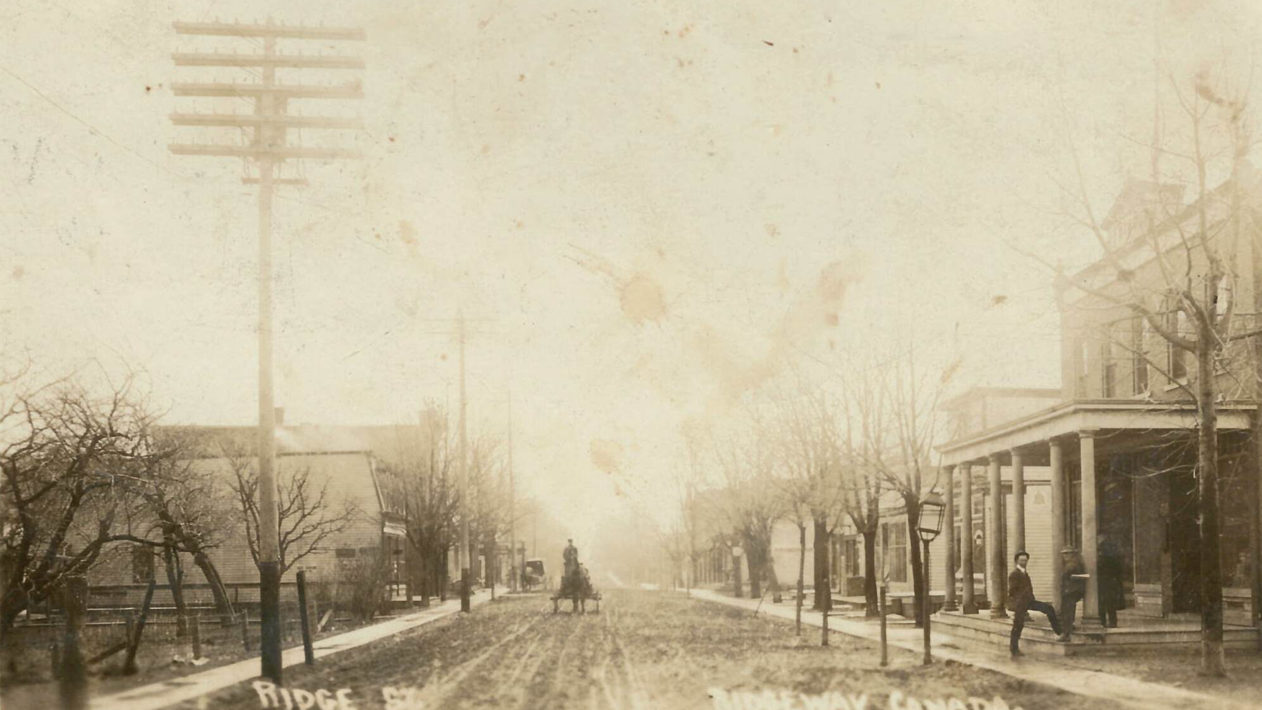 Ridge Road was one of the first two wagon trails in Bertie Township, originally running from Miller’s Creek on the Niagara River to Point Abino. View of Ridge Street (Ridge Road) c. 1909. (Photo A)