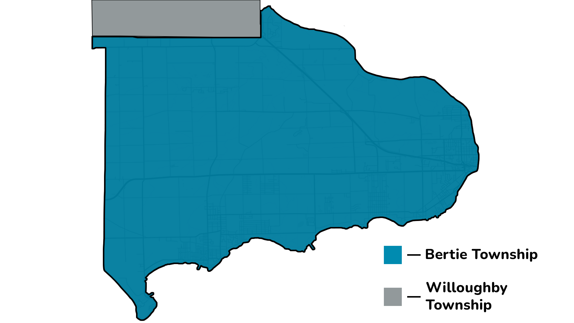 On a current map, Bertie Township would fall roughly between the Niagara River, Holloway Bay Road, Netherby Road and Lake Erie. It was named in 1793 by an Act of Parliament and was formally incorporated in 1850.