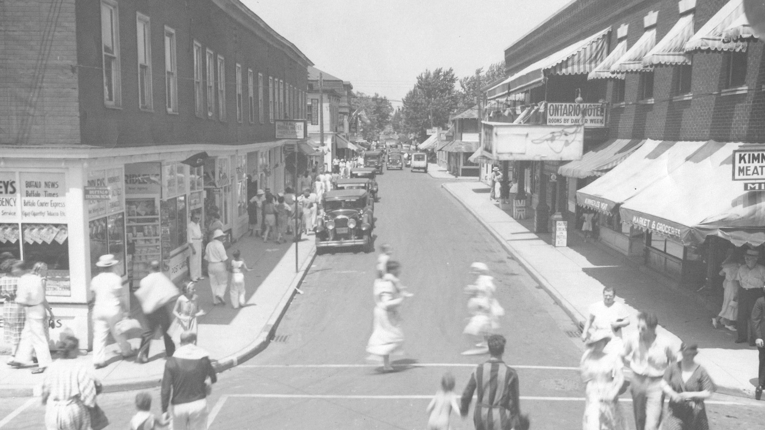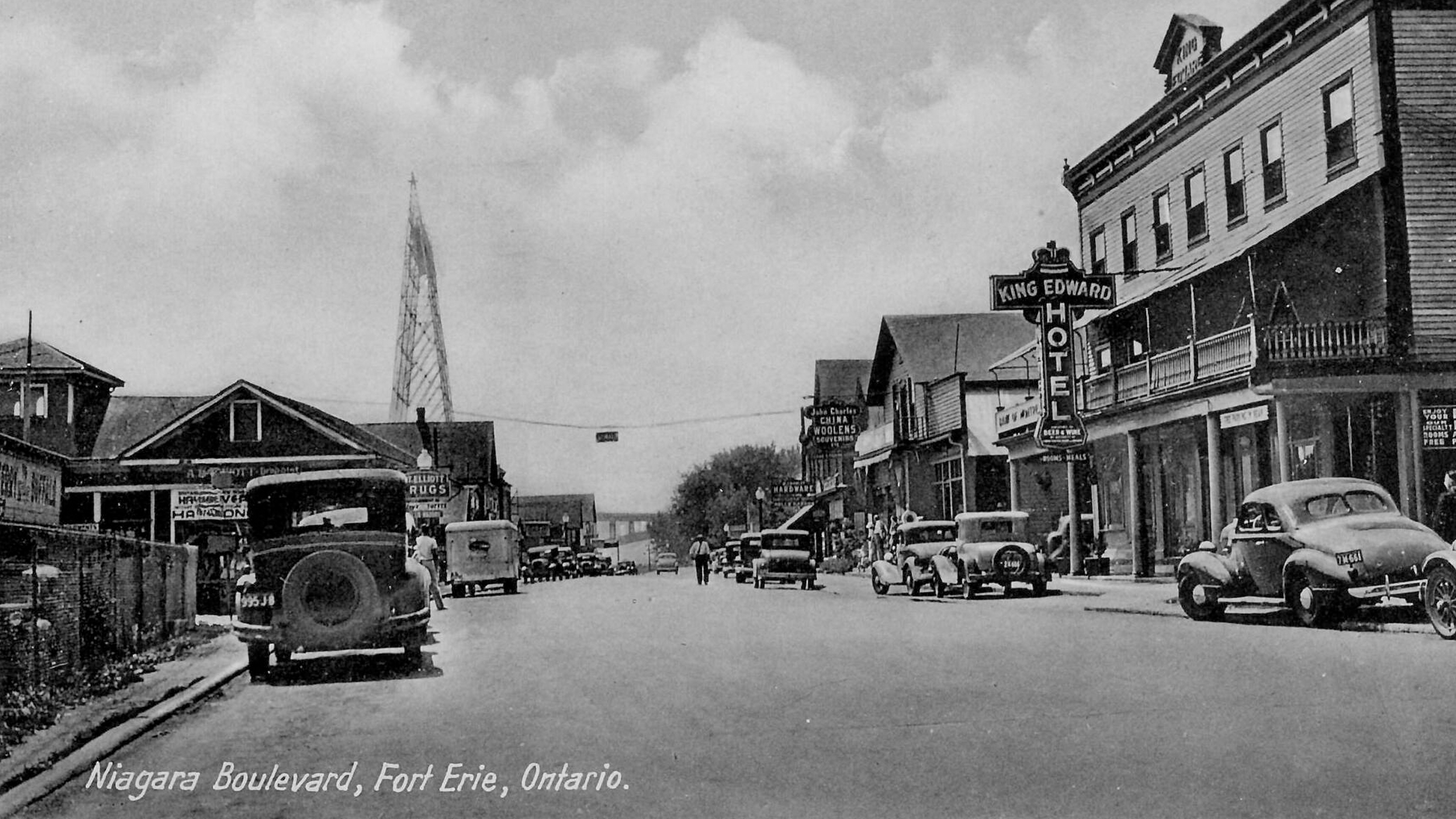 Fort Erie first developed in the 1790s around the area where the Peace Bridge stands today. The settlement had many names including Fort Erie Rapids or Fort Erie Mills. The growing settlement was known as Waterloo until 1857 when it incorporated as the Village of Fort Erie. This image shows a view of Niagara Boulevard looking south. The Fort Erie ferry landing is seen on the left.