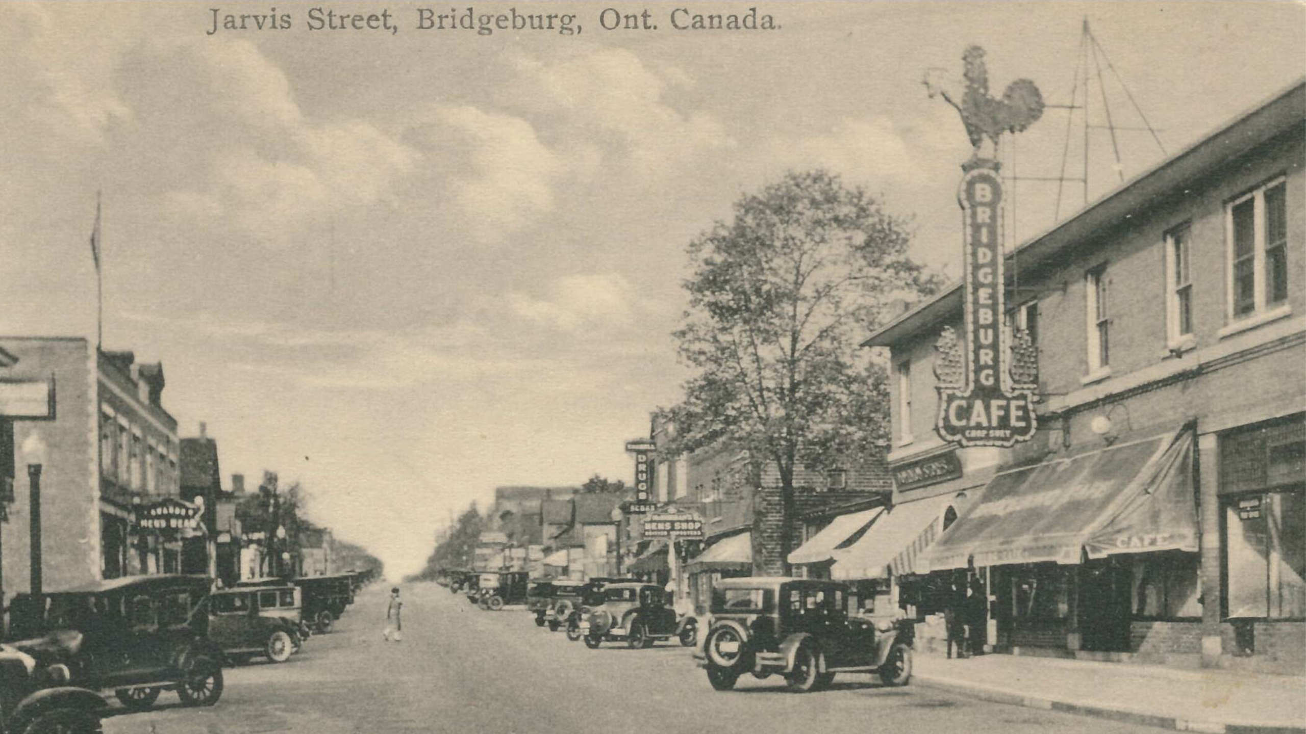Bridgeburg was a prosperous railway town with many shops and industries. This view of Jarvis Street in Bridgeburg was taken some time between 1924 and the 1940s. The Bridgeburg Café was built in 1924. (Photo B)