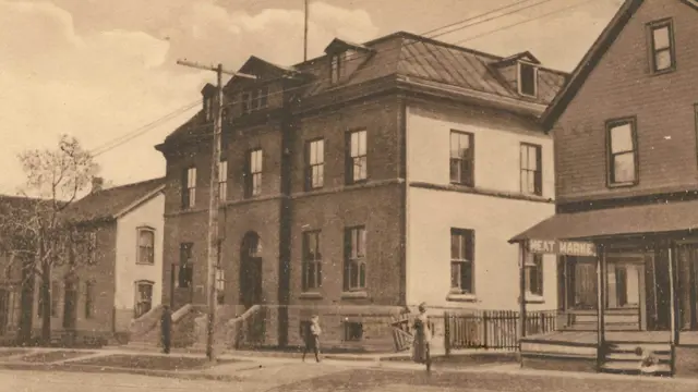 The village that developed north of Fort Erie was called Victoria until 1877. At this time a post office was opened, and the name International Bridge was selected. When the community broke away from Bertie Township in 1895 it was incorporated as the Village of Bridgeburg. This building was the post office and customs building located on Jarvis Street. (Photo A)