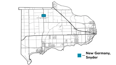 During the 1830s and 1840s there was an influx of German-speaking settlers, a fair number of which settled around the present Sodom and Netherby Road area. This portion of Bertie Township was first known as Ortville but later went by New Germany. A post office opened in 1887, changing the name to Snyder in honour of the man responsible for getting the post office in the community. The Commerical Hotel was located in the center of this community.